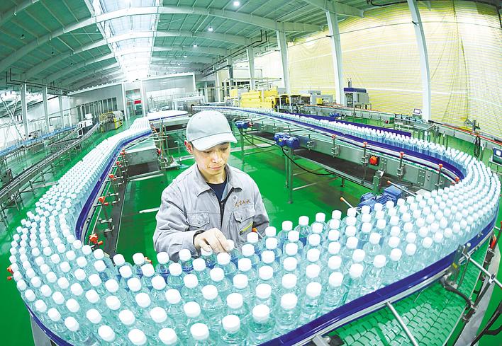 丹江口市武当山水饮料有限公司员工在加紧生产。(湖北日报全媒记者 田悦 通讯员 顾珊 张斌 摄)