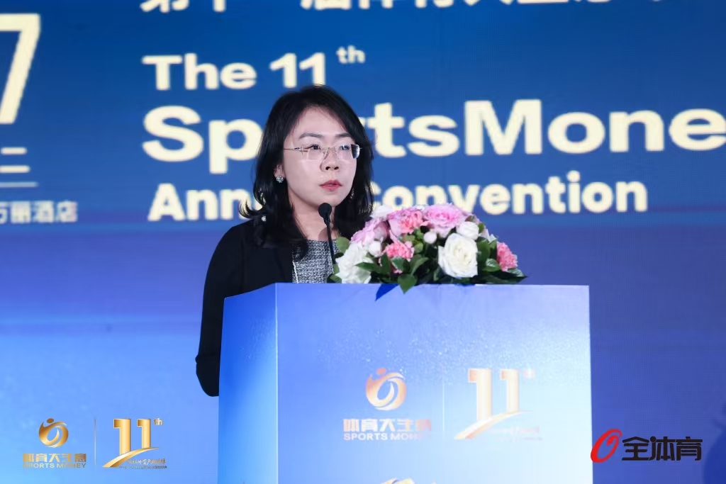 杜松玮在第十一届体育大生意年度大会上演讲。