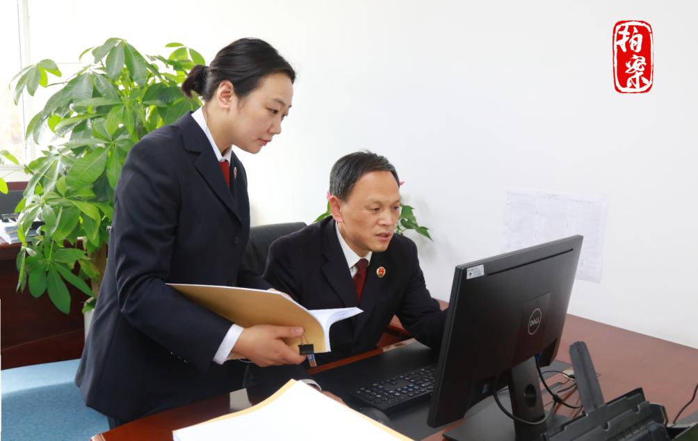 图为承办检察官核查相关电子记录。(苏州工业园区检察院供图)