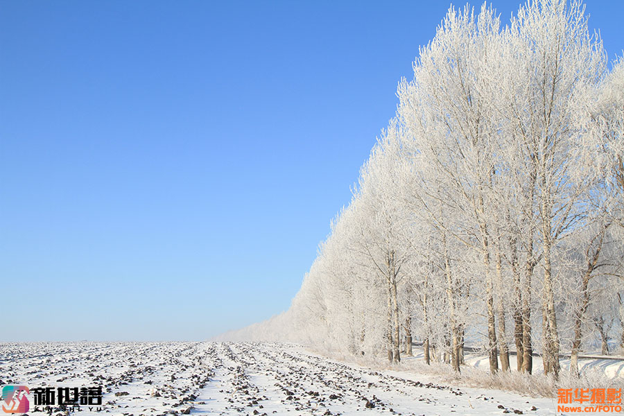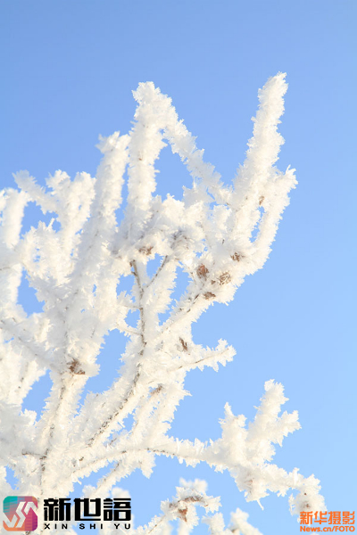 黑龙江省黑河市出现雾凇奇观。我国冬季大雪节气后雾凇景观越来越多,雾凇是一种自然奇观,让游人和摄影人惊喜不已。雾凇是低温时空气中水汽直接凝华,或过冷雾滴直接冻结,在物体上的乳白色冰晶沉积物。雾凇美景宛如白雪公主童话世界。新世语/林进春(声明:凡带有水印的图片,系版权图片,受法律保护,未经许可请勿转载。)