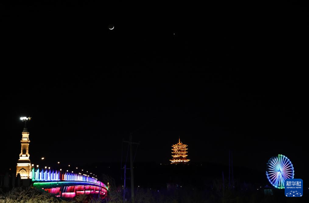3月2日在黑龙江省哈尔滨市拍摄的金星伴月。