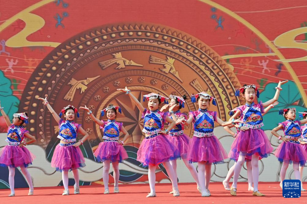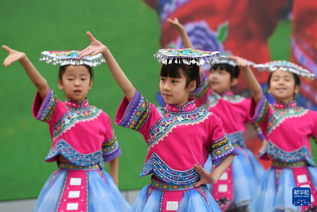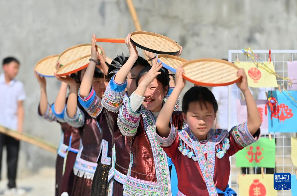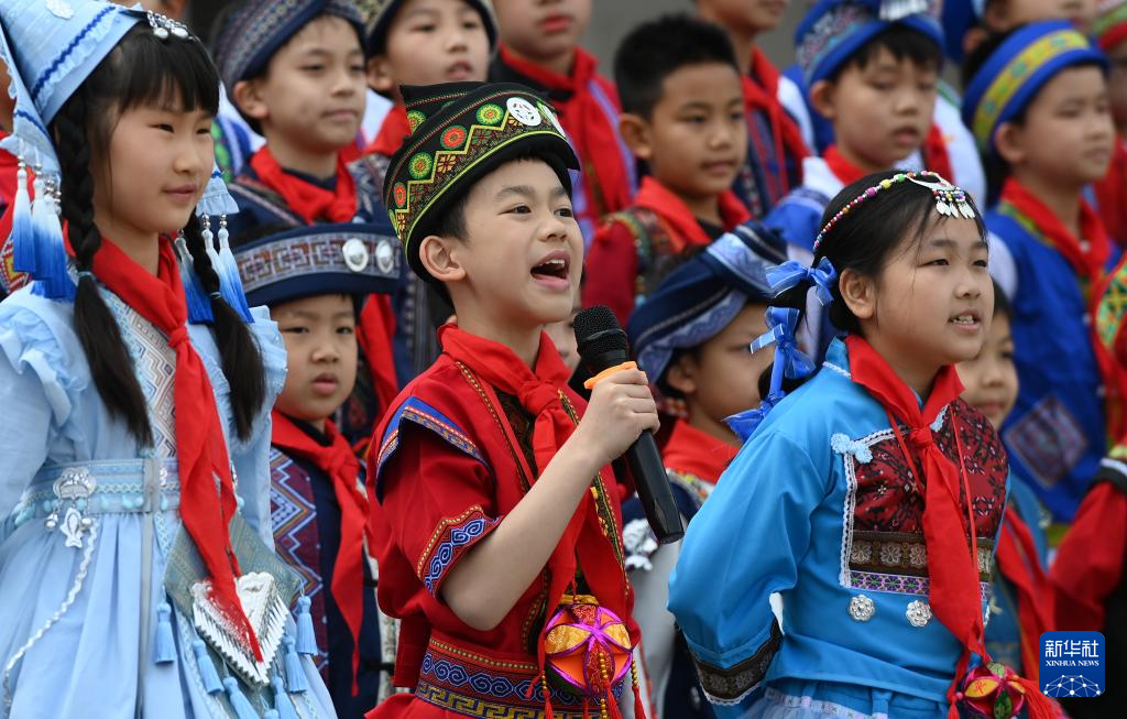 当日,广西柳州市融水苗族自治县杆洞乡中心小学举行石榴籽连籽·共庆“三月三”乡村少年宫民族风情文化展演活动,各族少年通过芦笙踩堂舞、山歌对唱、刺绣等丰富多彩的民俗文化活动,喜迎“三月三”传统节日。