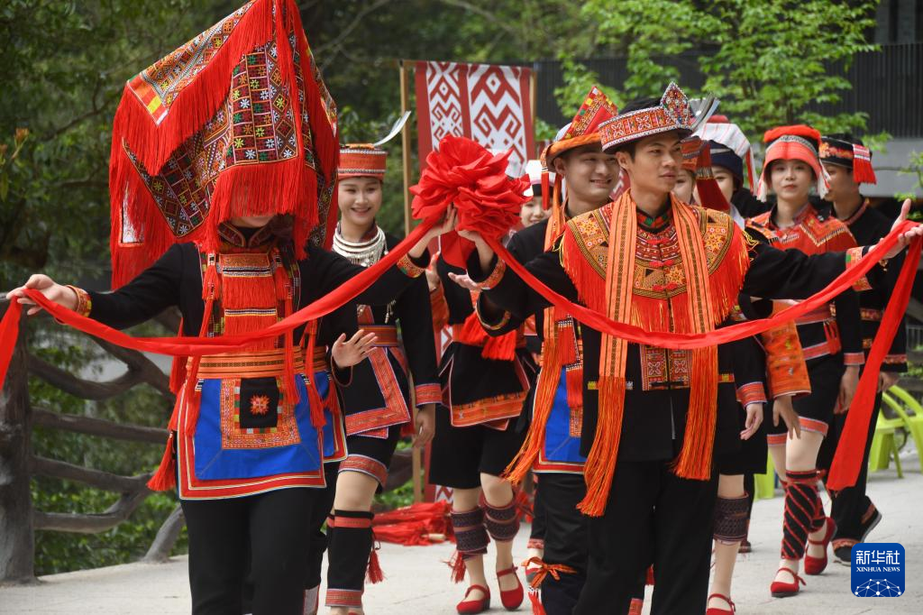 3月28日,在广西来宾市金秀瑶族自治县,人们在展示婚嫁习俗。