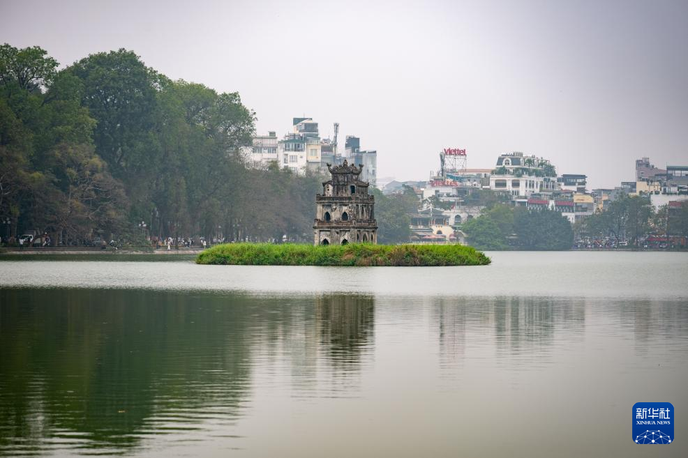 这是3月26日拍摄的越南首都河内还剑湖中的龟塔。