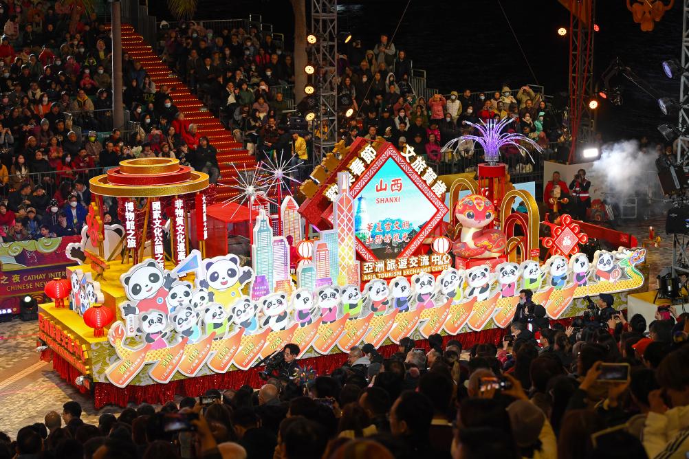 1月29日,亚洲旅游交流中心的花车在香港新春国际汇演之夜上亮相。新华社记者 陈铎 摄