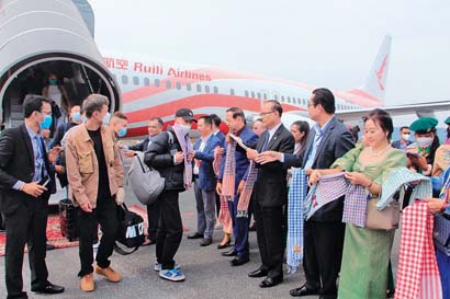 飞机停稳后,等待乘客们的是两排欢迎人群,这些从北京抵达金边的乘客受到柬埔寨旅游大臣童昆和中国驻柬埔寨大使王文天等的热烈欢迎。中国优化调整疫情防控政策后,将柬埔寨作为首批试点恢复中国公民出境团队游的国家之一,优先恢复和增加中柬直航航班,更加便利了中国游客赴柬埔寨旅游。