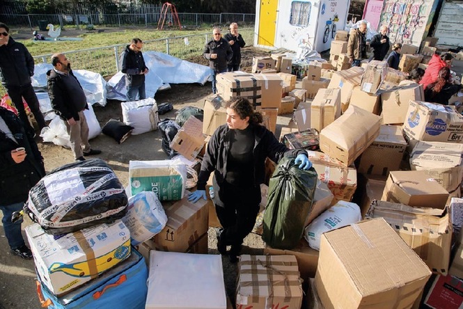 2月9日,在英国伦敦,志愿者准备将人们向土耳其震区提供的援助物资装车