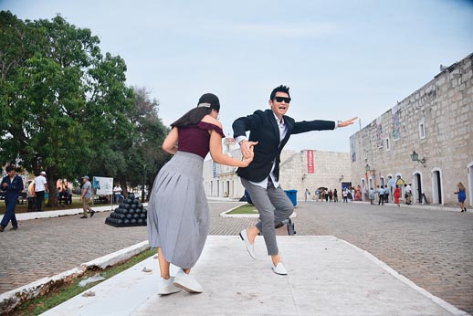 霍曜飞在古巴首都哈瓦那的莫罗-卡瓦尼亚古堡的空地跳舞