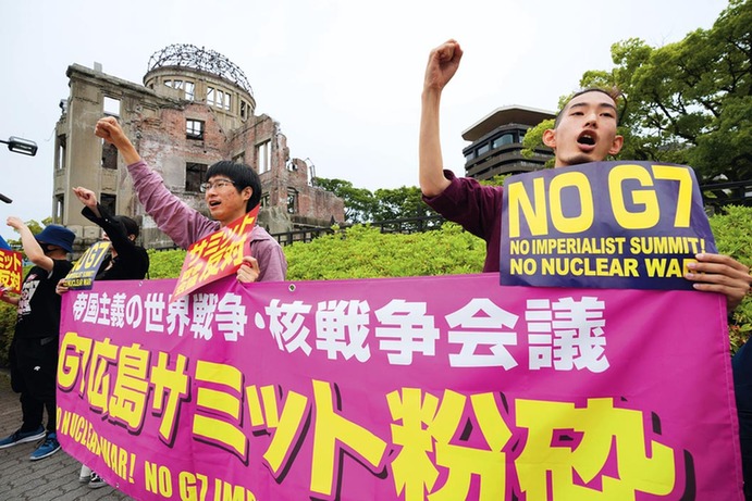 5月18日,民众在日本广岛和平纪念公园集会反对七国集团峰会
