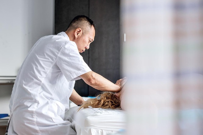2023年6月28日,珲春市一家医院的中医大夫为俄罗斯患者治疗