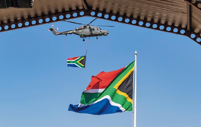 6月19日,在南非比勒陀利亚,直升机在南非新任总统就职仪式上飞过