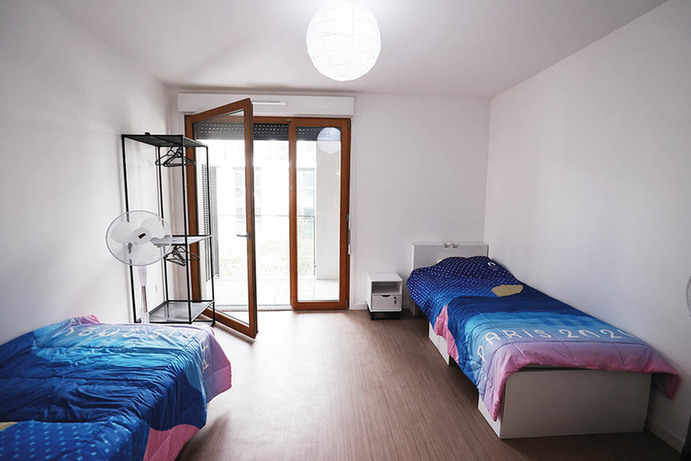 这是6月4日在巴黎奥运村和残奥村拍摄的运动员房间
