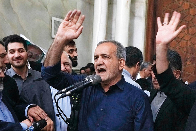当选总统为佩泽希齐扬,他7月6日在首都德黑兰表示,帮助国家克服“瓶颈、挑战和危机”将是未来的“重大考验”。伊朗最高领袖哈梅内伊当天会见佩泽希齐扬,祝贺他当选,希望他能推动伊朗继续进步和发展。