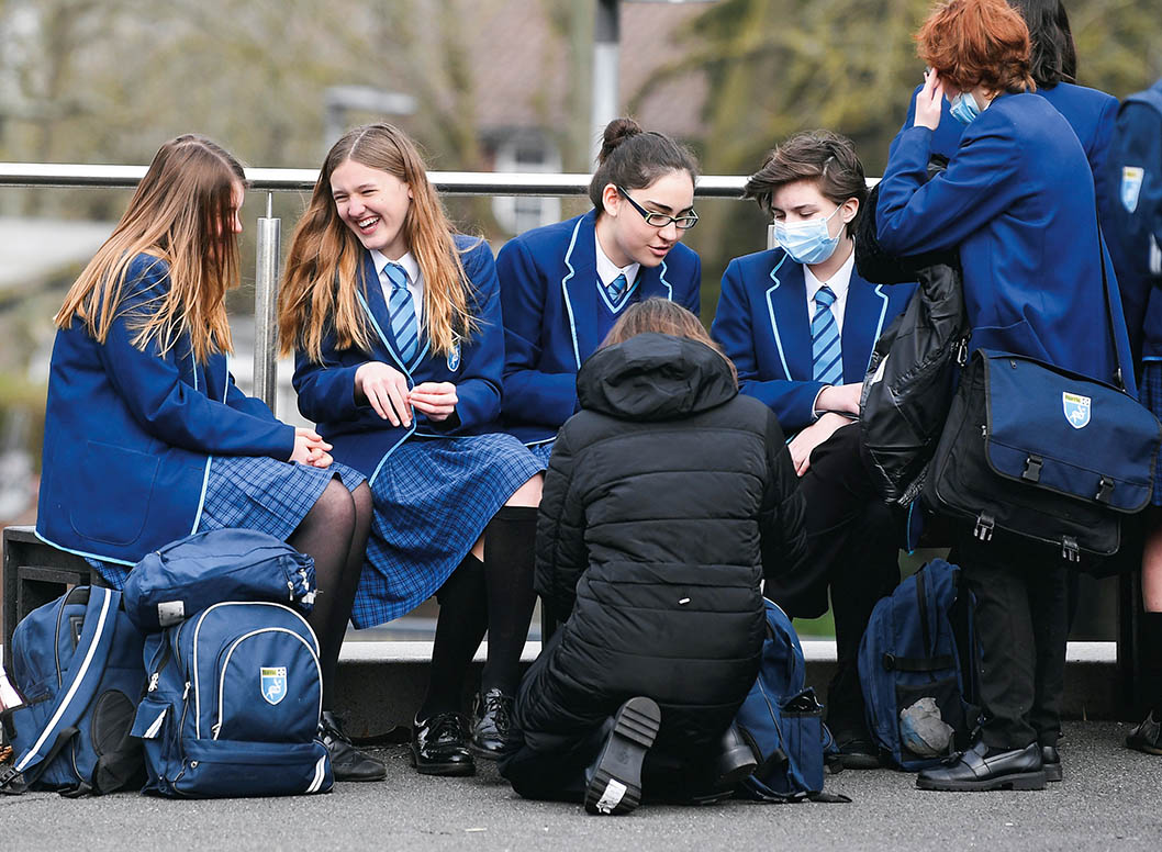 学生们在英国伦敦南部一所学校课间休息