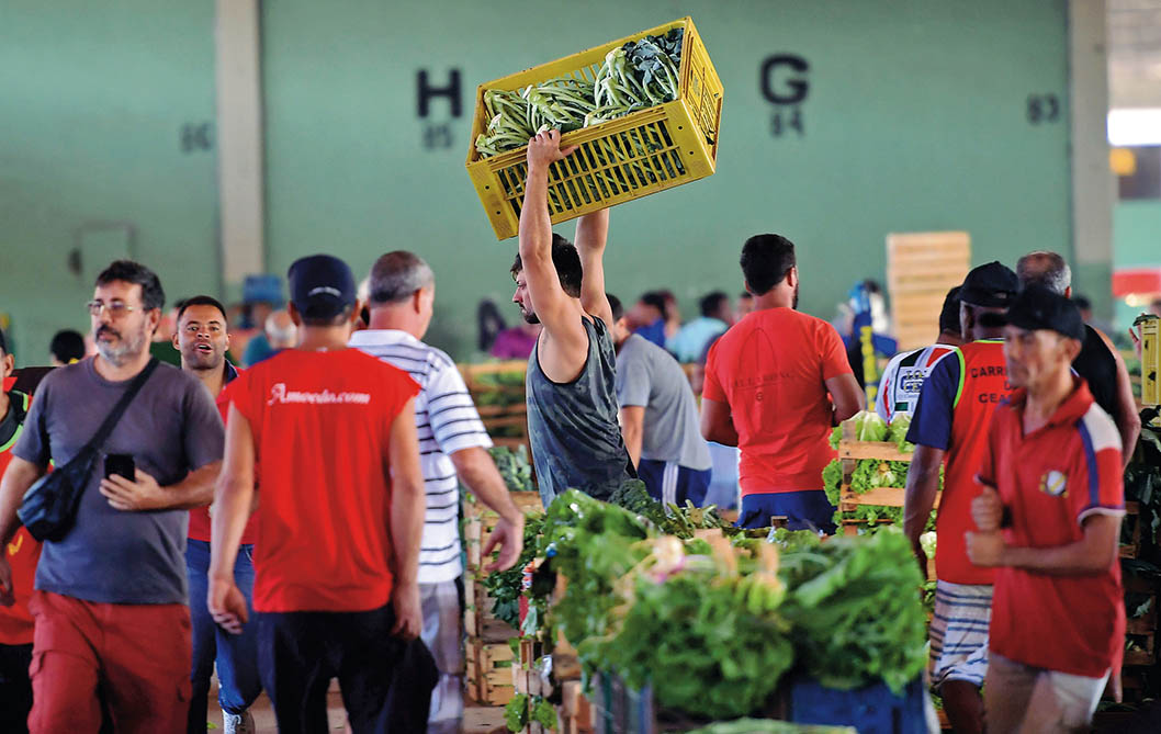 在巴西里约热内卢,一名商贩搬运蔬菜