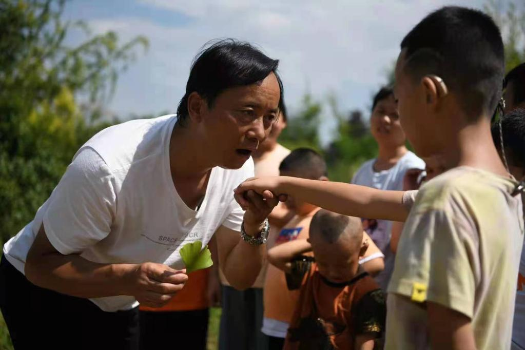 赵小平在给听障儿童做发音练习。图片均由杨仁海摄