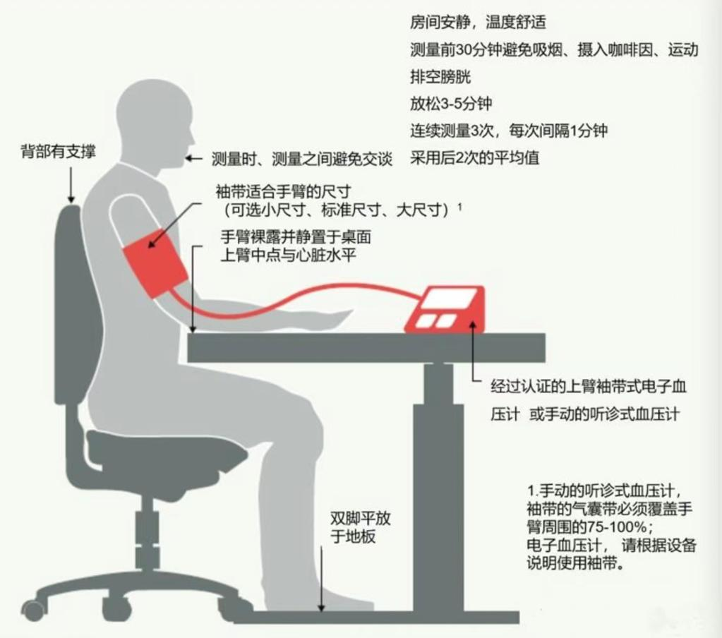 他介绍,家庭血压监测时需注意:每日早晚各测量3次,中间间隔1分钟,取后2次平均值。测量前至少30分钟内避免喝咖啡、运动或吸烟,排空膀胱,避免紧张情绪。每次测量时先静坐三五分钟,测量时勿交谈或挪动,双足平放在地面,背靠椅背。未使用降压药物的情况下,非同日3次血压超过140/90mmHg,可诊断为高血压,并开始生活方式干预和药物治疗。血压超过130/80mmHg则应立即关注,随着血压的升高,可能给心脑肾带来危害,建议开始生活方式干预。