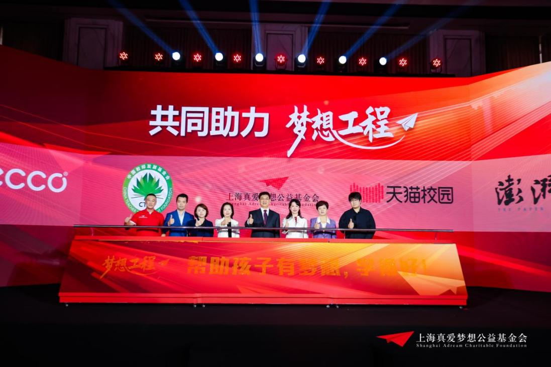 活动现场,上海市委统战部二级巡视员李霞、中国教师发展基金会理事长张中原、天猫校园CEO程少雄、浙江珀莱雅公益基金会秘书长方秦伟、上海真爱梦想公益基金会创始人潘江雪以及上海真爱梦想公益发展中心理事长周志毅等共同启动“梦想工程”公益计划。