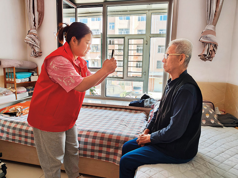 内蒙古科右前旗科尔沁社区工作人员为居民进行高龄认证(2024年6月17日摄) 受访对象供图
