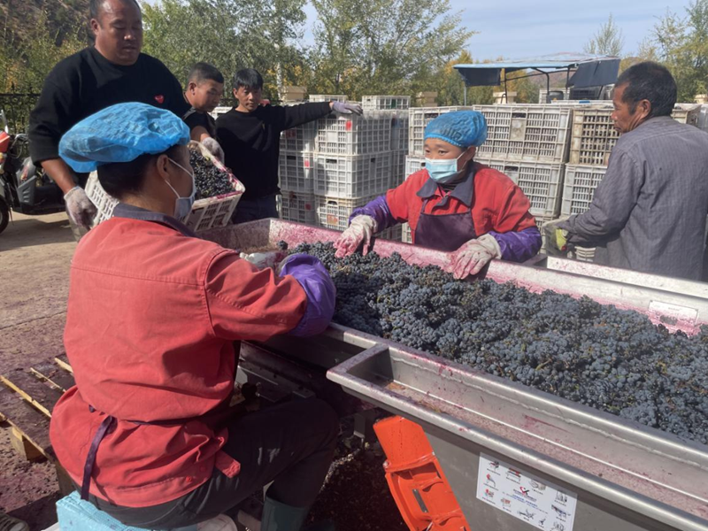 马鞍山村山葡萄收获季节,村民正在收购山葡萄。 新华网发 (赤峰市喀喇沁旗河南街道工作人员 张智博 摄)
