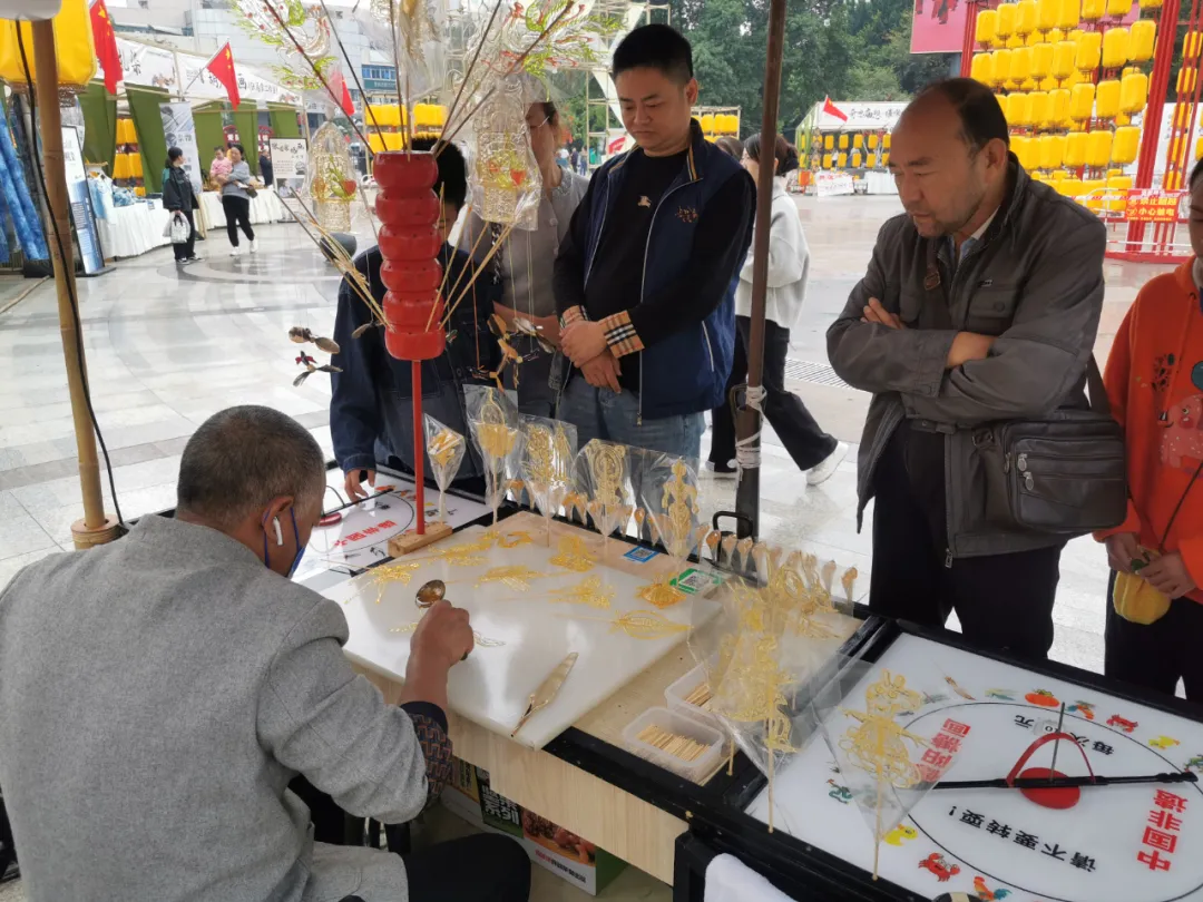 非遗雅集现场,糖画等吸引了众多游客驻足。(德阳市文旅局供图)