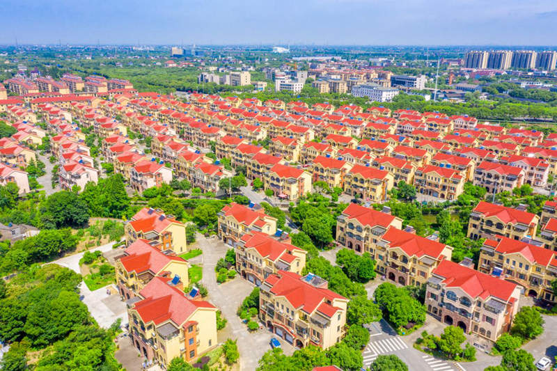 桃园村村民住宅,一排排联排别墅,错落有致。(浙江省海宁市文明办供图)