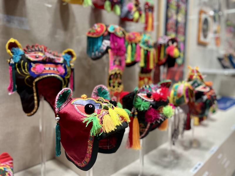 2月1日,传统手工艺品虎头帽在临沂市非物质文化遗产馆展出,可爱的造型瞬间抓住了观众们的眼球,引得他们纷纷驻足观赏。新华网 张群 摄pagebreak