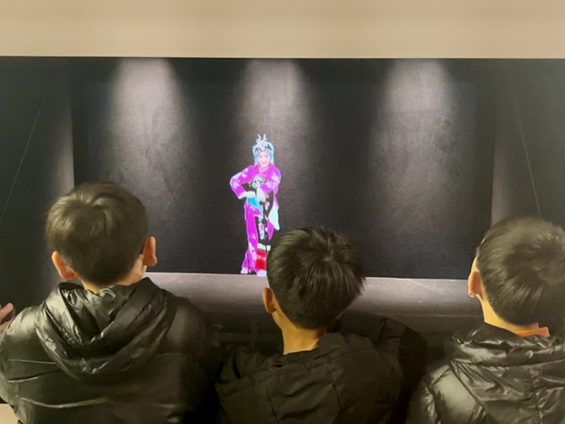 2月1日,临沂市非物质文化遗产馆柳琴戏电子展示区,吸引了许多前来参观的小朋友,他们好奇地探索着戏曲背后的故事。新华网 张群 摄pagebreak