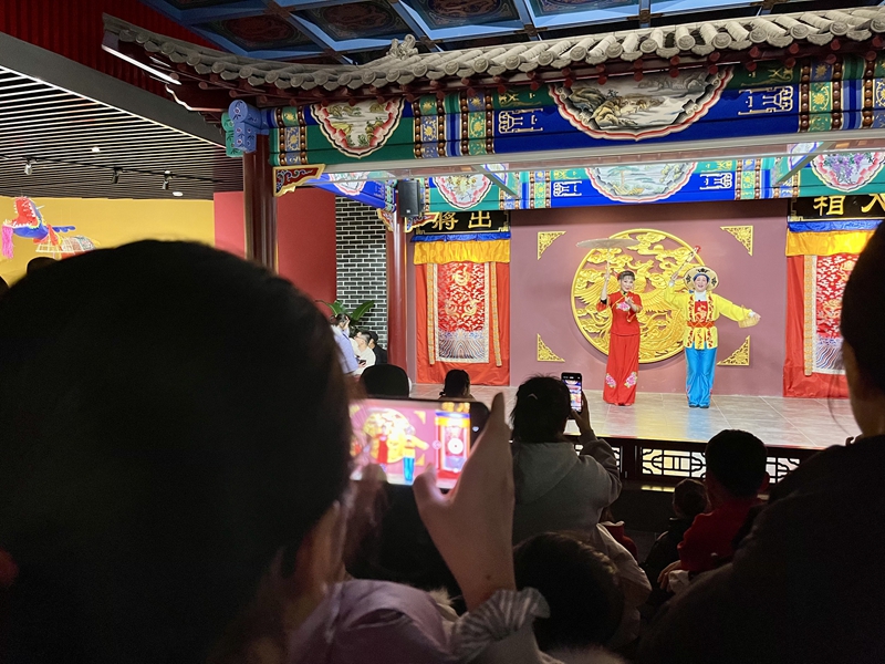 2月1日,在临沂市非物质文化遗产馆,柳琴戏表演精彩上演,演员们带来国家级非物质文化遗产代表性项目柳琴戏《回娘家》选段,不少人拿出手机拍摄留念。新华网 张群 摄pagebreak