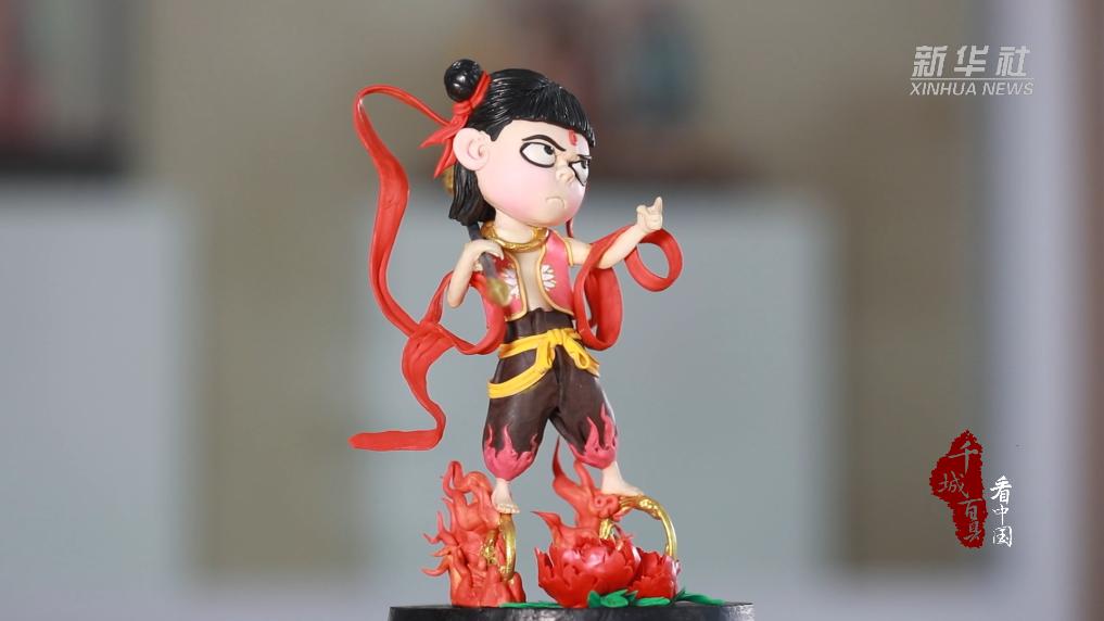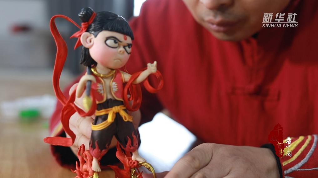 近日,在山东省菏泽市牡丹区小留镇面塑非遗工坊,当地手艺人正在根据电影《哪吒之魔童闹海》创作面塑作品。作品采用国家级非物质文化遗产代表性项目曹州面人制作技艺,主要手法有捏、搓、揉、压、刻等。由面泥制作而成的“哪吒”表情灵动、栩栩如生。