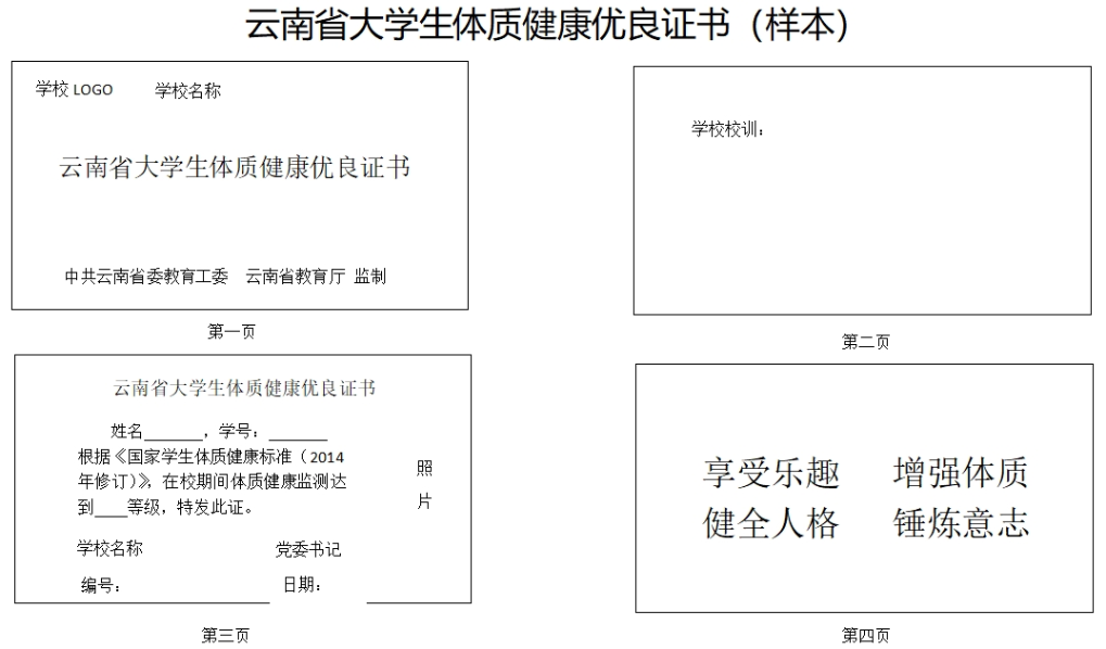 据介绍,云南省大学生体质健康优良证书由省教育厅统一模板,各高校统一制作发放,证书上还要求加盖学校公章和校党委书记印章。