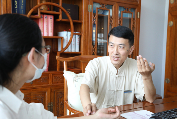 进入南阳张仲景医院“治未病中心”,国医馆副主任邢玉良正在仔细为患者把脉问诊。邢玉良毕业后带着对仲景文化的敬仰,只身来到南阳张仲景医院工作。邢玉良表示,中医药文化自信的关键需要理论自信、疗效自信。中医药发展需要坚持做好传承与创新工作。