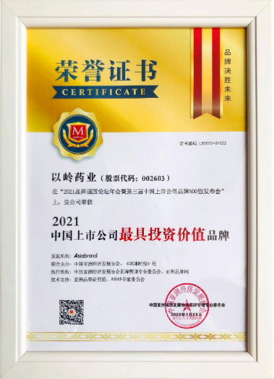 1月26日,由Asiabrand、中国亚洲经济发展协会和《环球时报》社联合主办的“2021品牌强国论坛年会暨第三届中国上市公司品牌500强发布会”在线上举行。以岭药业获评“2021中国上市公司最具投资价值品牌”。