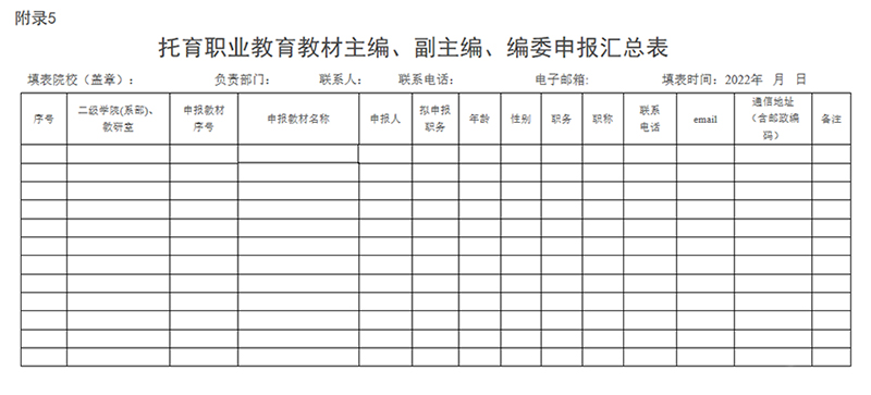 5. 托育职业教育教材主编、副主编、编委申报汇总表