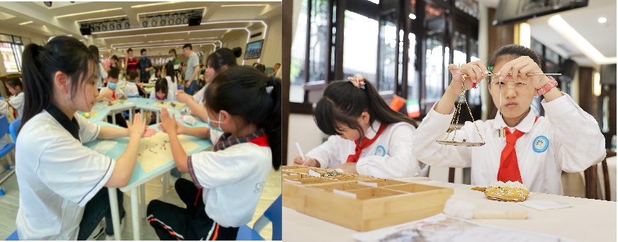 “哇,中草药的味道好香”“快看我搓的艾条”“我这个香囊好漂亮,回去送给妈妈”,大家热热闹闹地围在一起分享自己的感受,喜悦之情溢于言表。在中草药的阵阵清香中,同学们不仅深切体验了动手的快乐,还体会到了中医药与传统节日的独特魅力。
