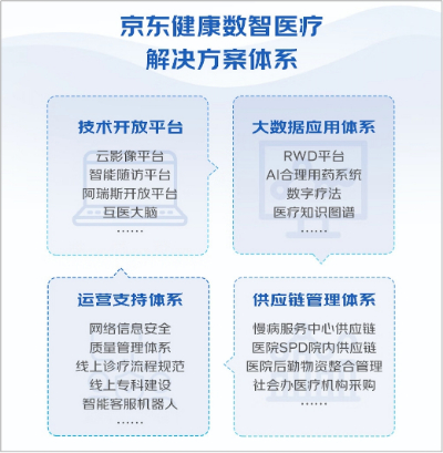 据了解,京东健康数智医疗解决方案体系包括:“技术开放平台”“大数据应用体系”“运营支持体系”及“供应链管理体系”,并通过一体化交付模式,为不同医疗服务机构提供全方位、定制化的数智医疗解决方案。