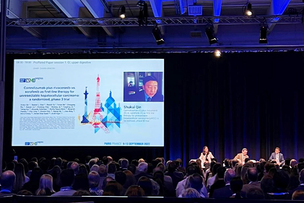 9月10日,由南京金陵医院秦叔逵教授领衔的一项国家I类新药研究成果“卡瑞利珠单抗联合阿帕替尼一线治疗晚期肝细胞癌的全球多中心、随机对照Ⅲ期研究(SHR-1210-III-310)”,在欧洲肿瘤内科学会(ESMO)年会发布。经本年度组委会严格筛选和评审,该项研究成果从全球近3400份投稿中脱颖而出,成功入选2022ESMO年会口头报告。