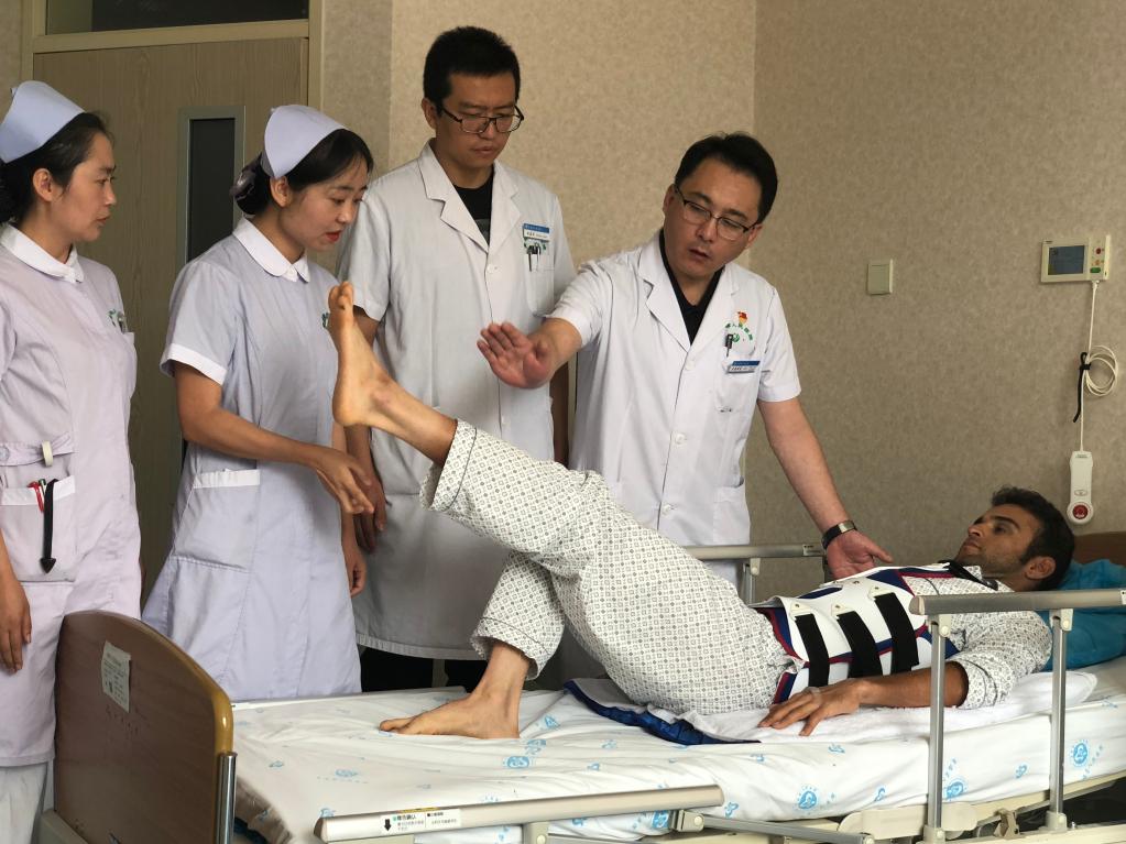 青海省人民医院骨四病区主任医师索南昂秀(左四)正在为患者做检查。(受访者供图)