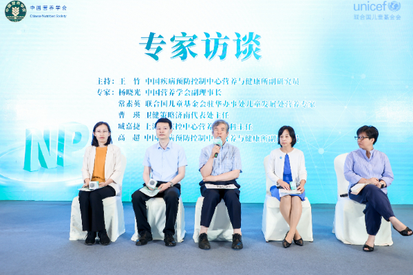在之后的访谈环节,中国营养学会副理事长杨晓光、联合国儿童基金会驻华办事处儿童发展处营养专家常素英教授、上海市疾控中心营养健康科主任臧嘉捷、中国疾病预防控制中心营养健康所副研究员高超、卫健策略主任曹瑛出席并回答了现场媒体的提问。访谈由中国疾病预防控制中心营养与健康所王竹教授主持,与会专家分别围绕NP模型国际现况、中国NP模型开发的重要性、NP模型的制定方法等进行了剖析和介绍。中国营养学会理事长杨月欣在总结会议时呼吁社会各界积极参与营养健康的宣传和实践,共同为建设健康中国、实现全民健康目标,为中国儿童营造健康的饮食环境而努力。