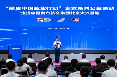 8月14日,由新华社品牌工作办公室联合中国盐业集团有限公司共同发起的“健康中国减盐行动”走近系列公益活动在北京大兴区中国南方航空集团北京大兴基地举办。本次活动旨在普及减盐知识,提升公众对盐与高血压关系的认识,推动健康低钠盐更大范围普及应用。