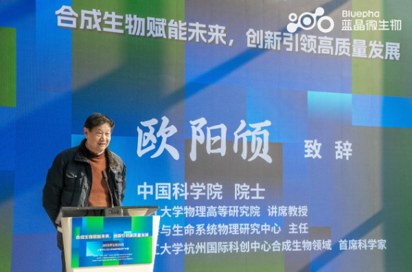在会议致辞环节,中国科学院院士欧阳颀提出合成生物学是一门有很大发展潜力的新兴学科,也是培育新质生产力的重要方向,目前机遇与挑战并存,合成生物学产业要想达到“设计与生产分离”的里程碑,仍需系统生物学研究的突破,当下创新链与产业链深度融合是产业发展的关键。