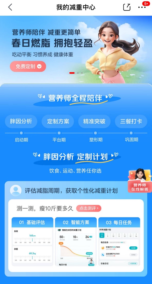 科学的营养支持在减重过程中至关重要。京东互联网医院的减重中心配备专业营养师,能够根据个人体质、健康状况和减重目标,制定科学的饮食计划和运动方案,确保减重过程健康安全。京东健康全职营养师武媚表示,科学减重的核心是控制热量摄入,增加热量消耗。要从日常饮食、饮水、运动、睡眠以及心理情绪管控等方面入手,科学制造热量差,达到科学减重、减脂且不易反弹的目标。