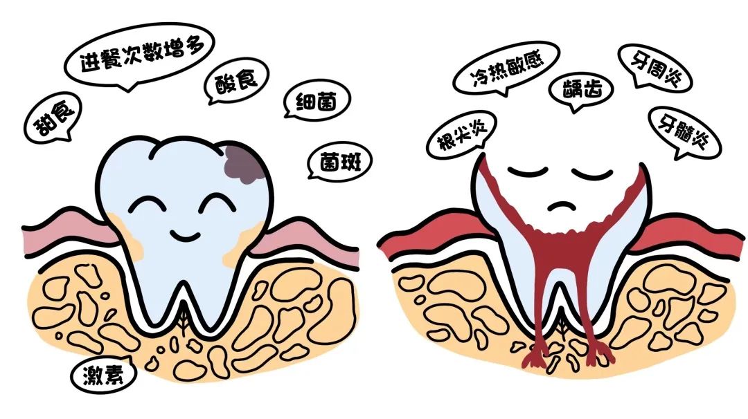 很多女性在怀孕后,喜欢酸甜或偏辣饮食,进食次数也会增加,还有不少人因孕吐反应导致身体不适、行动不便,放弃刷牙或减少刷牙的次数和时间。同时,孕期激素水平变化,口腔内正常菌群的平衡状态被打破,以及孕期合并症等这些因素都会加速口腔疾病的发生或使轻度口腔疾病严重发作。