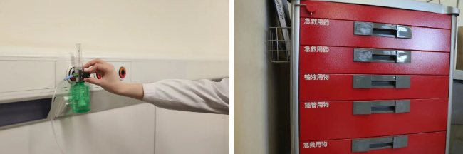 此外,急救用药、插管用物等装备齐全的抢救车及氧气瓶也在门诊楼的每一层“待命”,可随时快速处理异常情况。在门诊楼二层中心治疗室,还增设了氧气表头及负压吸引等以备不时之需,把“一切为民”的服务落实到每一个细微之处。