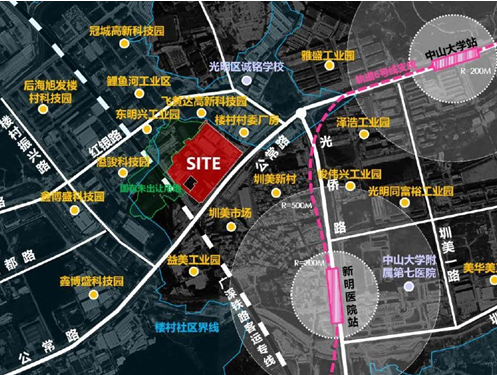 光明光侨食品厂改造项目位于深圳市光明区新湖街道,交通区位优势明显,邻近深圳地铁6号线延长线新明医院站(在建中),广深港高铁线。项目占地约5万平米,预计改造后可提供超16万平米可售住宅。
