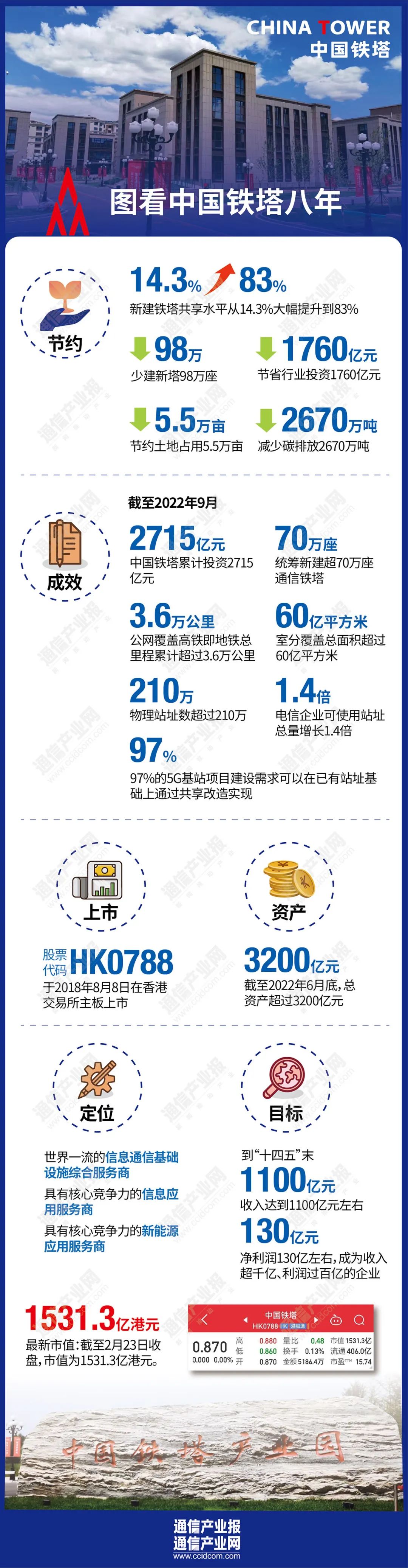 “八年来,全行业通过深化共享节省投资1760亿元;节约土地资源5.5万亩;减少碳排放2670万吨”,这是日前中国铁塔和信通院联合发布的《通信基础设施共建共享发展研究报告》所披露的一组数字。