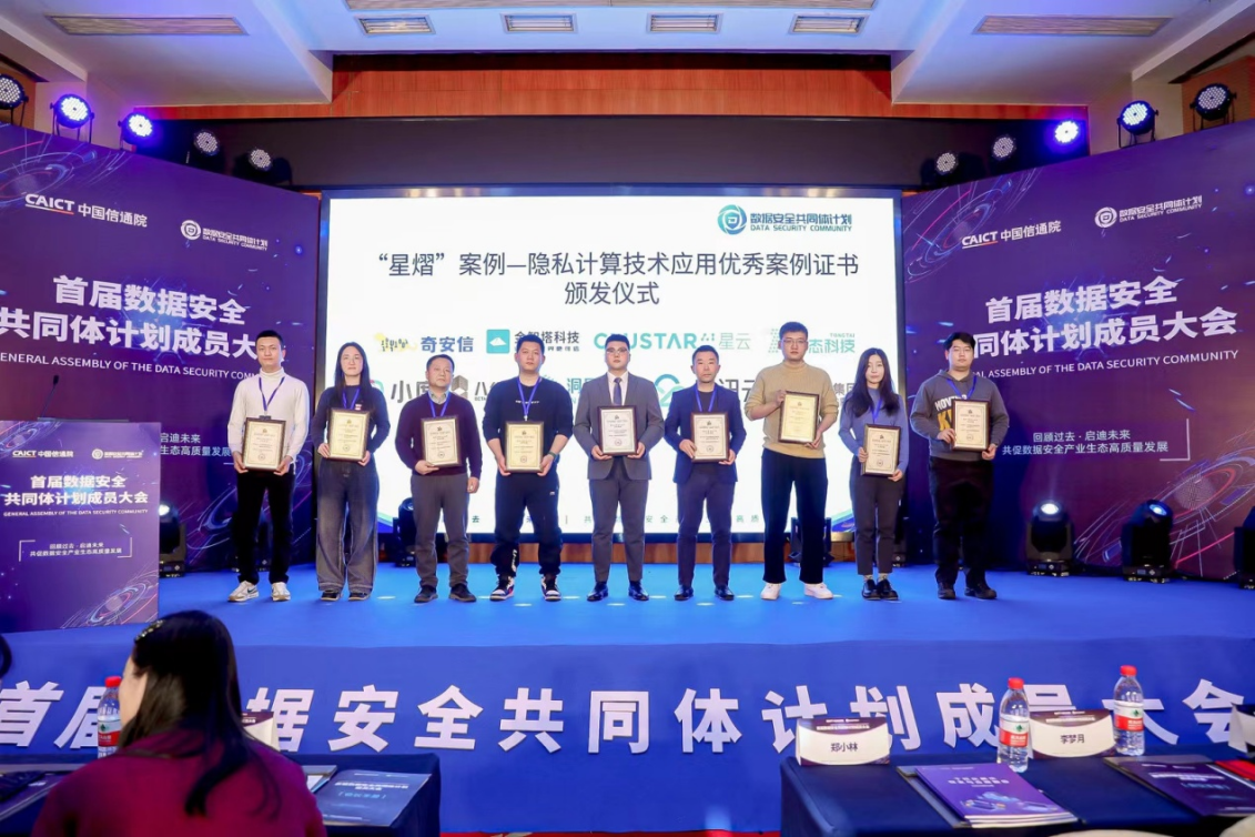 近日,由中国信息通信研究院安全研究所主办的首届数据安全共同体计划成员大会在京成功召开。中国信通院安全研究所副所长魏薇、中国铁塔业务支撑部总监程赓、中国移动集团高级专家江为强出席会议,浙江大学计算机创新技术研究院副院长、金智塔科技首席科学家郑小林出席并做主题演讲。会上发布了由中国信息通信研究院数据安全共同体计划发起的数据安全星熠案例评选结果,金智塔科技联合浙江省统计局打造的隐私计算赋能政务数据跨域安全共享与融合计算项目脱颖而出。