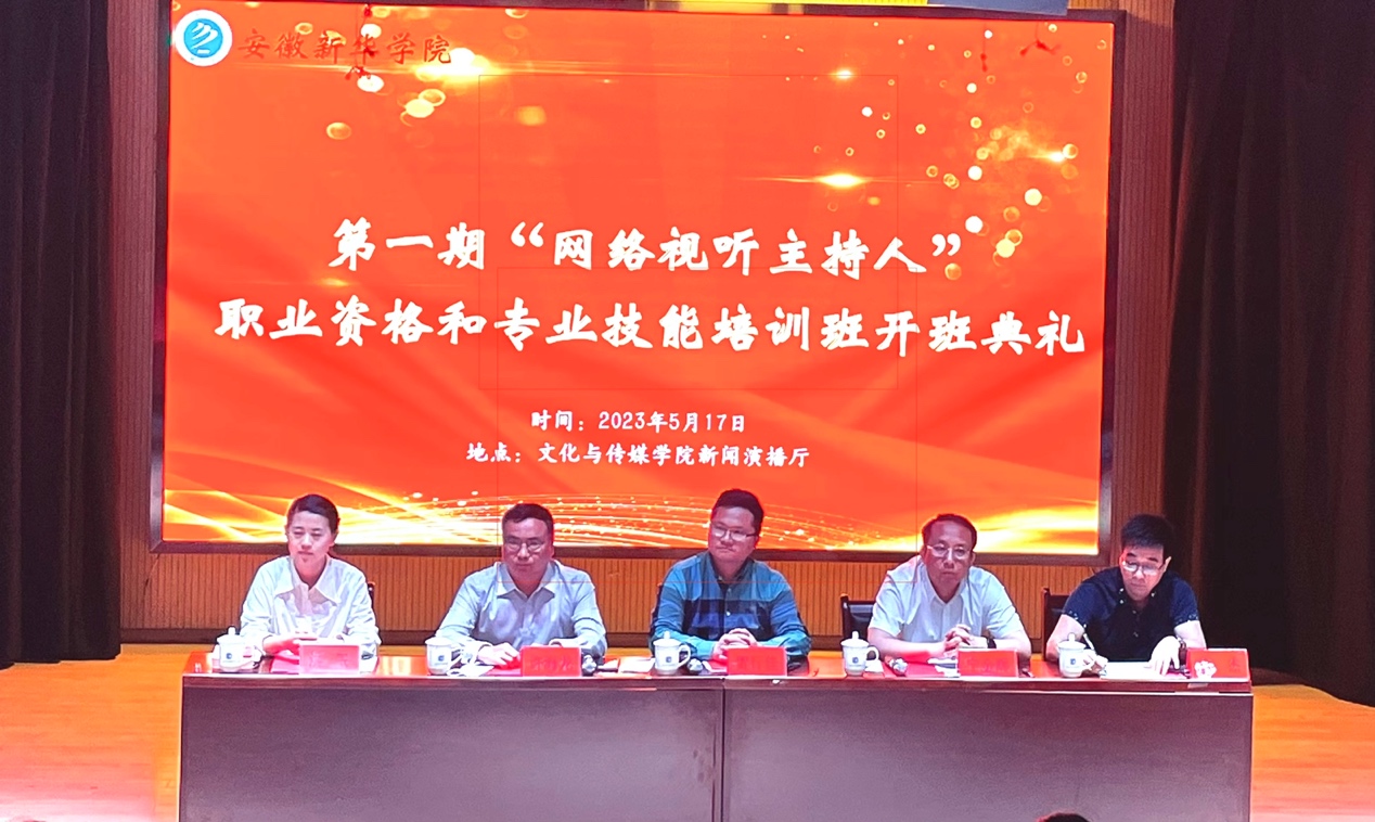 5月17日,网络视听主持人职业资格和专业技能培训班(第一期)在安徽合肥开班。本次培训班由国家广播电视总局广播影视人才交流中心指导,国家广播电视总局广播电视规划院全资子公司北京广电天地科技有限公司主办,北京新视听科技服务有限公司协办,安徽新华学院承办,安徽新华学院共99名相关领域师生参加培训。安徽新华学院贺行佳副校长和国家广播电视总局广播电视规划院制播所宁金辉所长分别致辞,安徽省网络视听产业联盟许海龙主席出席开班典礼。