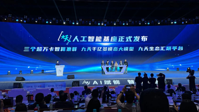 一是发布“万千百”智能基座。以大算力、大模型、大数据、大平台四位一体的九天人工智能基座,具备3个近两万卡算力、千亿参数多模态大模型、汇聚百大要素的生态汇聚平台的特点,旨在广泛汇聚产业力量,助推经济社会高质量发展,催生新质生产力,为数字中国建设注入更加强劲动能。