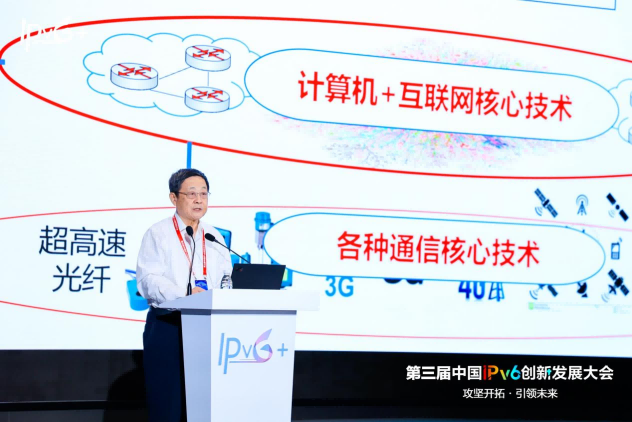 邬贺铨发表了《从“IPv6+”到新质互联网》主旨演讲。邬院士在演讲中表示,目前利用IPv6的扩展字段已经取得了诸多拓展性的创新成果,特别是在网络感知能力、算路能力以及测量能力方面实现了显著的提升。随着人工智能技术的快速发展,“IPv6+”需要进行持续创新,以互联网的“新质”支撑生产力的“新质”,以“IPv6+”驱动新质互联网创新发展。